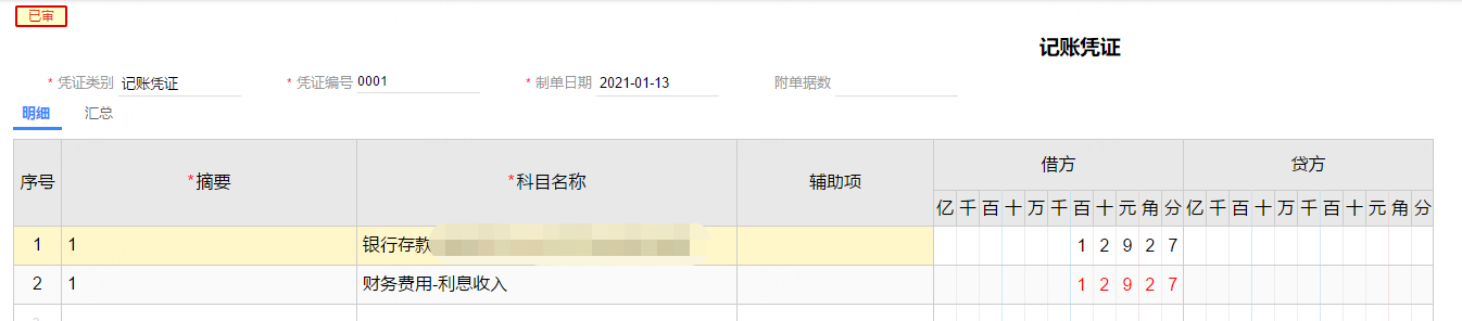 利息收入科目在做凭证的时候,是做借方红字,如借银行存款 129.27,借利息收入-129.27,