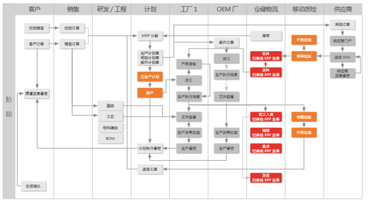 • 通过集成供应商门户实现采购订单、ASN、包装条码、与来料检验,订单执行对账