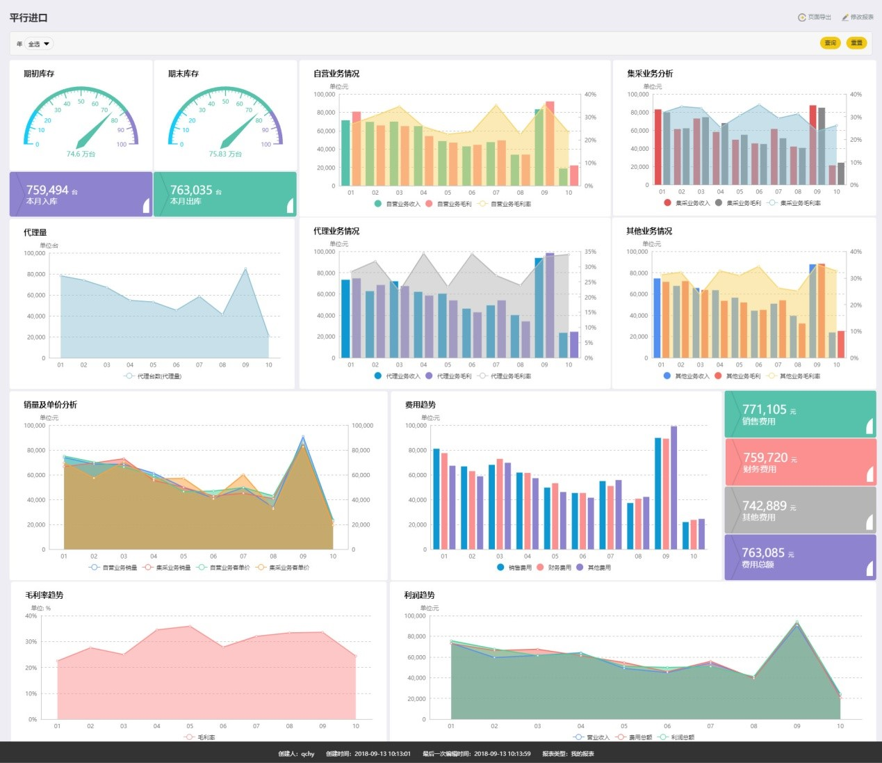 企业日常的业务数据(财务、供应链、人力、运营等)全面呈现出来,再通过各种维度(看数据的角度)筛选、关联、跳转、钻透等方式查看各类分析指标。
