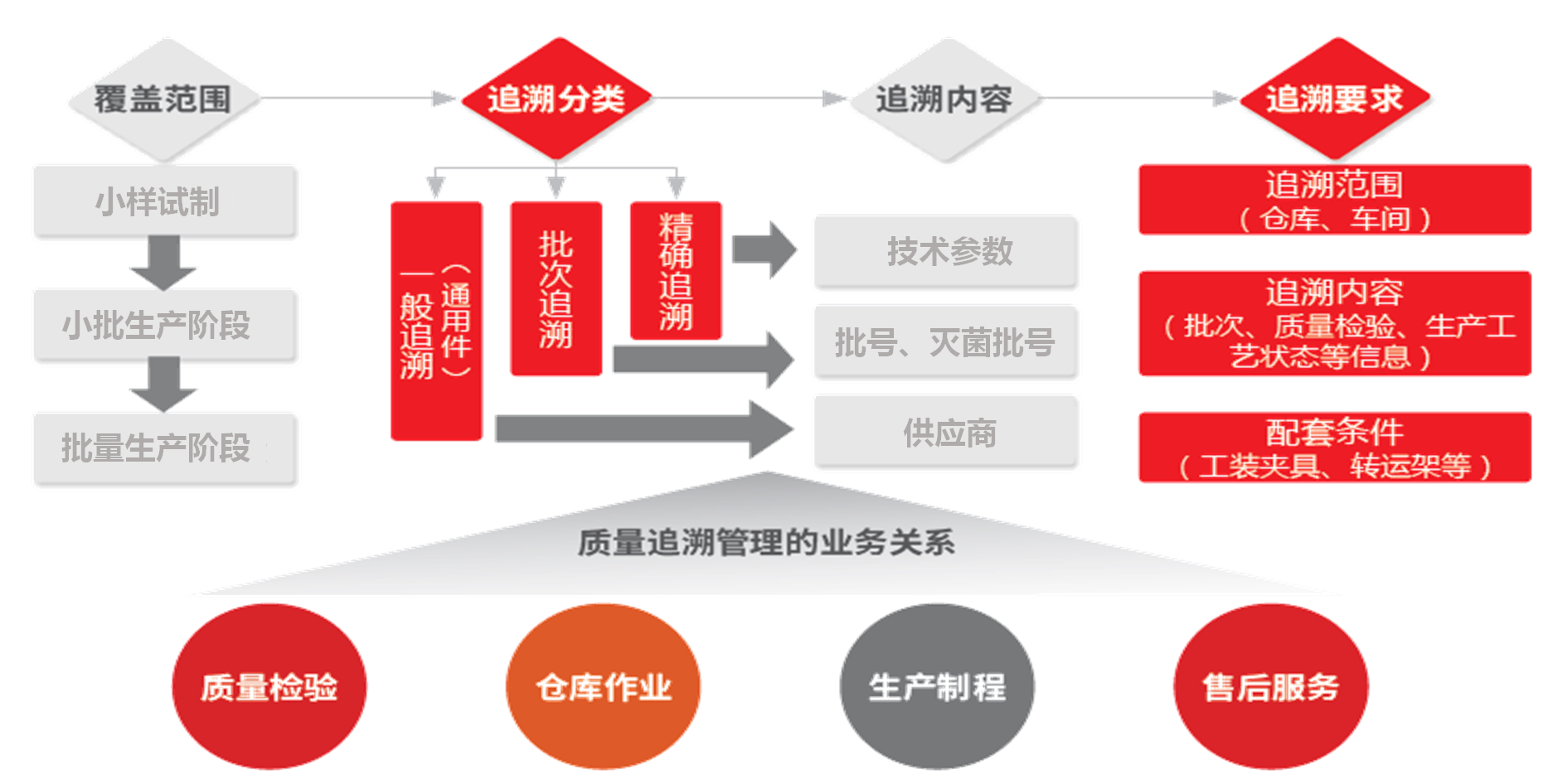 建立以批次或条码为基础的质量追溯体系,实现从采购到收货、检验、仓储、生产和销售的全程精准、高效追溯体系。
