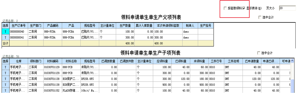 电工行业由于料件较多,单独依靠人工控制困难。对IC,PCB,Flash关键料件需要进行申领发料。订单生成时需要根据领料申请属性确定子件属性,并根据领料申请生成材料出库。