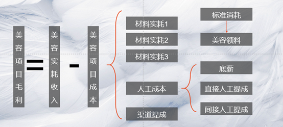 根据XX集团的成本分摊要求,要对美容项目毛利进行精细化核算和分析。首先制定美容项目的标准成本消耗,并根据实际的美容项目实耗相关材料成本,做比对,并根据集团的偏差要求,进行美容项目的整体毛利精细化计算以及美容项目的门店毛利精细化计算。