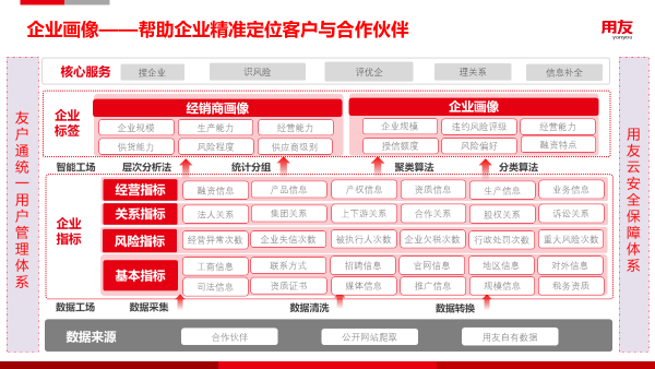 通过数据湖,输入企业内外部的大数据,形成客户的企业画像,帮助企业精准定位客户与合作伙伴。
