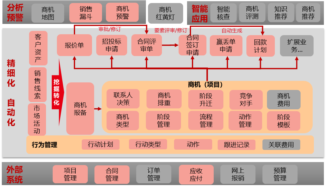 通过对客户的深度经营,有效的孵化商机,提升商机的质和量,建立更深的客户关系。对产生的项目要能够灵活的有效的支持。实现以项目为核心的业务流程,实现按项目的成本核算。
