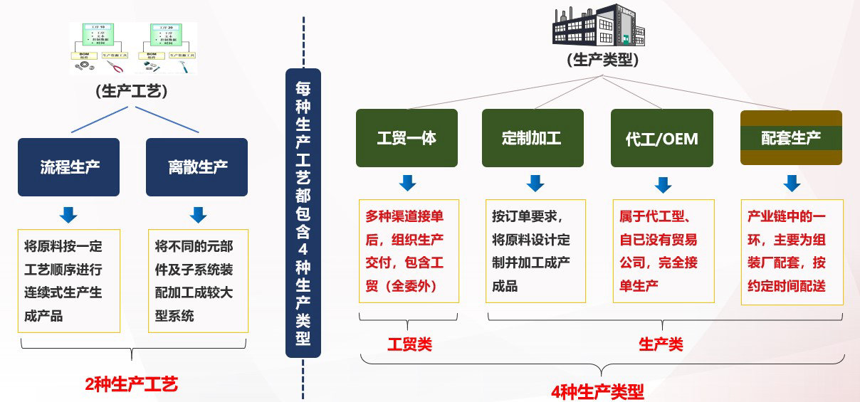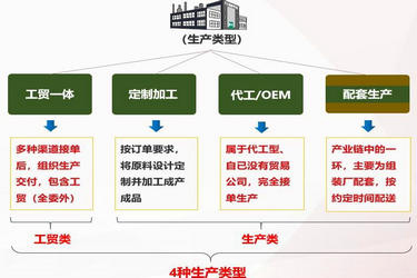 制造型企业按生产类型分为:工贸一体、定制加工、代工/OEM、配套生产