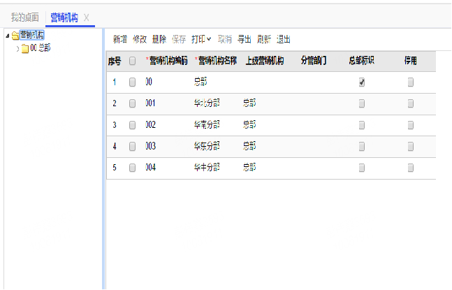 可以看到,这里软件已经自动形成了一个有“总部标识”的营销机构,默认是账套名称,这里改为总部,同时,新增下级营销机构。