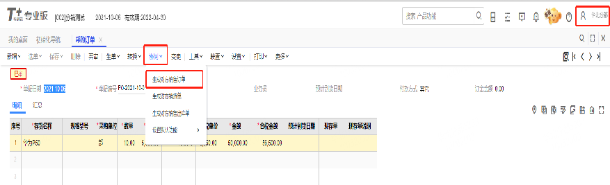 登录经销商账号做张采购订单,协同生成总部销售订单