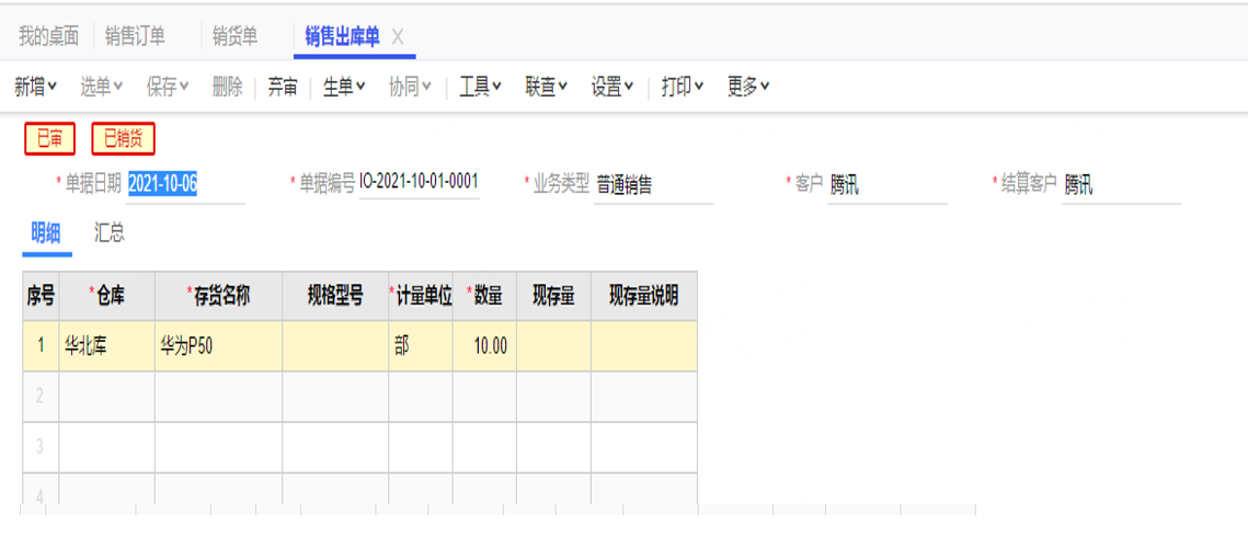 供应商在草稿里查看分销商协同生成的销售订单确认之后生成销售单和销售出库单