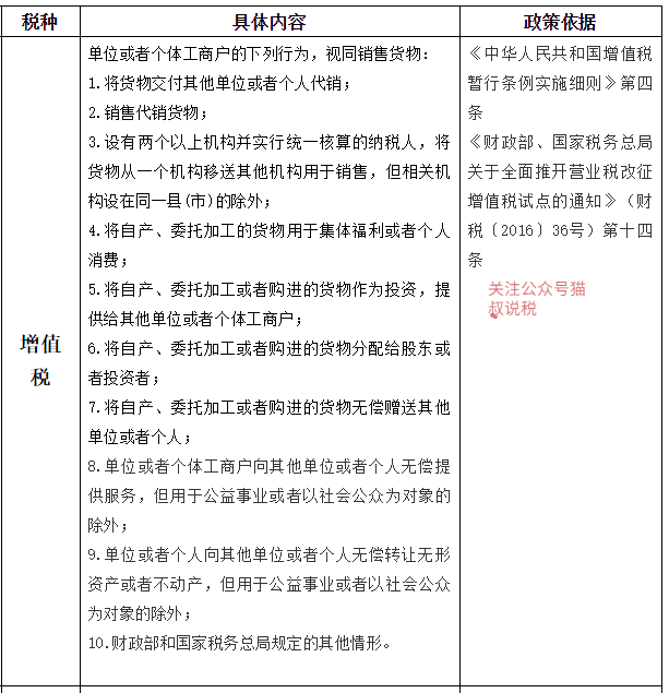 视同销售的情形总结: