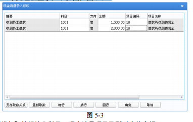 点击〖增加〗按钮输入科目、现金流量项目及所对应的金额。