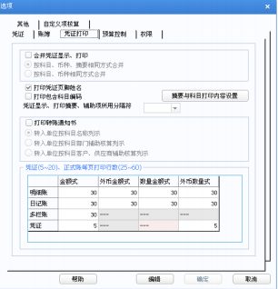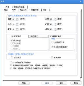 1、 打印位数宽度(老打印控件适用):定义正式账簿打印时各栏目的宽度,包括 摘要、金额、外币、数量、汇率、单价。