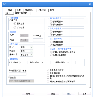 1、 外币核算:如果您的企业有外币业务,则应选择相应的汇率方式─ ─ 固定汇率、 浮动汇率。"固定汇率"即在制单时,一个月只按一个固定的汇率折算本位币金 额。"浮动汇率"即在制单时,按当日汇率折算本位币金额。