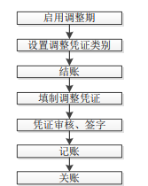 如果您希望在结账后仍旧可以填制凭证用来调整报表数据,可在总账选项中启用调 整期。调整期启用后,系统自动在结账功能菜单后增加关账功能菜单 ,在结账之 后关账之前为调整期。在调整期内填制的凭证为调整期凭证。