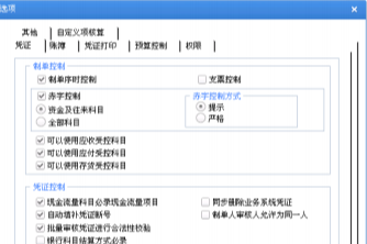 该选项由预算管理或者费用预算系统控制。可选择在凭证保存时进 行预算控制,或在审核时进行预算控制。凭证保存进行预算控制时,可进一步选择 是否在凭证作废时控制。