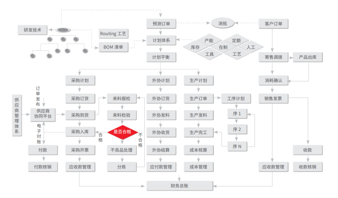 • 实现了从销售到计划到生产供应全业务流程的管控,实现了企业物流管理的闭环。
