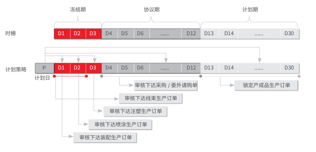 • 主机厂下达月度备货计划,计划部制定月度预测订单。