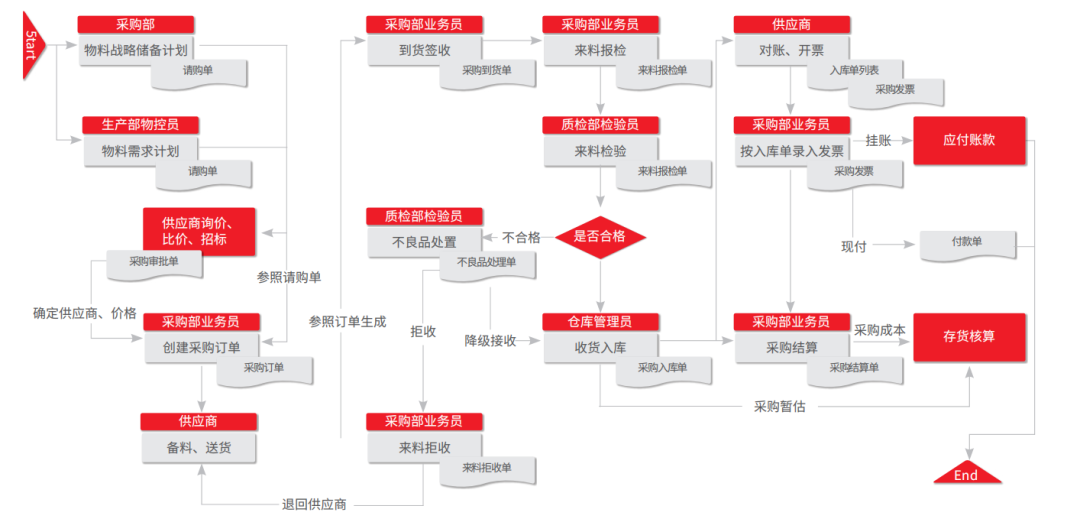 基于 ERP 系统,重点关注采购业务中:供应商管理,供应商价格管理,供应商绩效评判;采购计划、订货、到货、入库、开票结算 全流程管理,及采购到货质量检验过程管理。