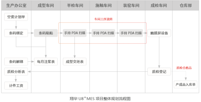 MES系统是翔华信息化建设的重点。系统是基于序列号条码(高温花纸)技术,