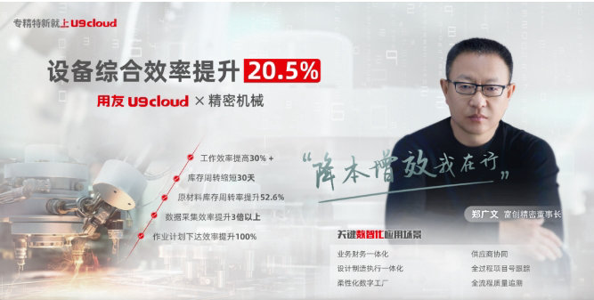 随着智能制造、工业物联网的推进,富创精密以用友U9 cloud为核心,构建了统一、柔性、可扩展的企业数字化管理平台。不但完善了多品种、小批量、定制化产品的离散制造管理模式,建成了集成电路关键设备零部件柔性数字化车间,而且通过与智能制造深度绑定,满足了客户的定制化需求,降低了对人工的依赖。
