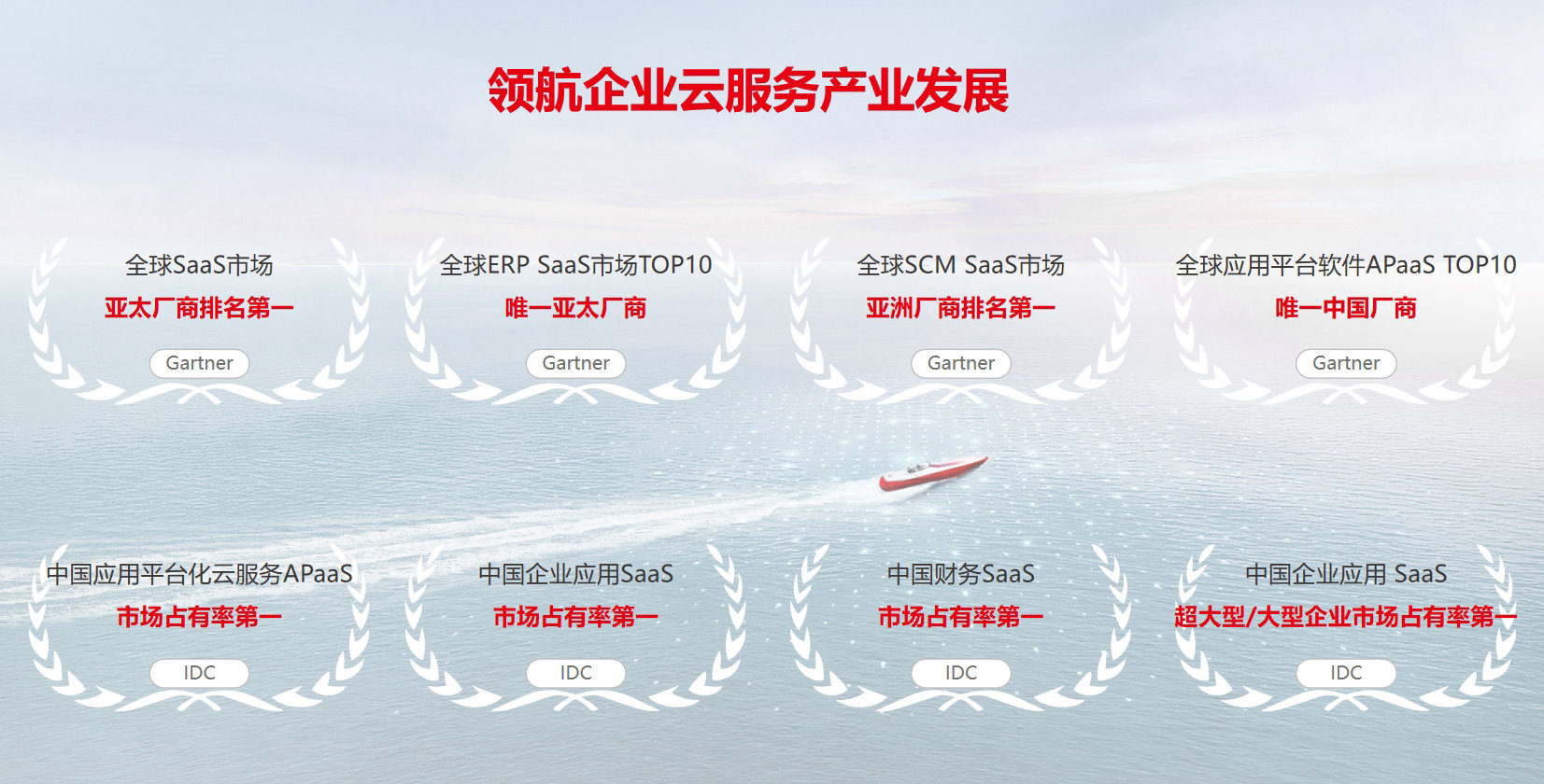 根据Gartner的研究,用友在全球ERP SaaS市场中亚太区排名第一(全球第八),并且是唯一入选Gartner全球云ERP市场指南和综合人力资源服务市场指南的中国企业。同时,IDC数据显示,用友在中国企业云服务市场持续领先,占据中国应用平台化云服务APaaS市场和中国企业应用SaaS市场的最高份额,并在大型企业市场连续多年保持市场占有率第一的地位,是中国企业数智化服务和软件国产化创新的重要品牌。